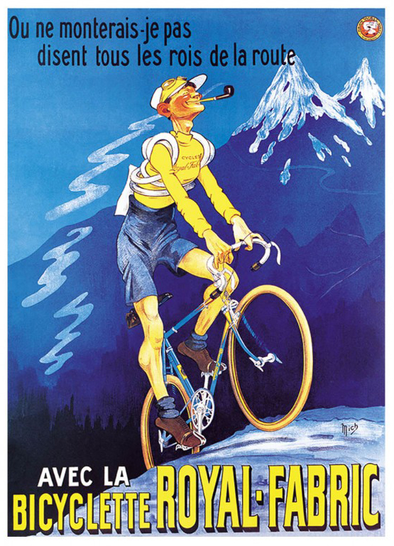 Royal-Fabric ne lésinait pas sur la qualité de ses publicités en faisant appel à l'affichiste Mich (ci-dessous). Effort payant car sur les sites et blogs où il est question de bicyclettes de la marque, tous soulignent l'excellente qualité de leur fabrication.