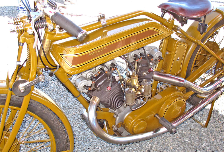 On reste dans le "gros" avec cette Motosacoche au très rare moteur sur lequel on trouve peu de renseignements dans les gazettes de l'époque. Lors du G.P. de Suisse, la marque vient en force avec 4 machines en 500 dont une confiée au Lyonnais Tony Zind. Il s'en est fallu d'un fil (de bougie) que le jeune Tessinois Francesco Franconi gagne devant la Peugeot de Péan. Il se peut qu'Augusto Rossi signe la première victoire de la nouvelle Motosacoche. À la Journée des Records du 9 août, sur le km lancé au Bois de Boulogne, il réalise en 500 un record du monde avec 153,551 km/h. Pour sa part, Franconi engagé en 1000 fait mieux à 159,928. Mais il est impossible de savoir s'il était sur la 500 ou sur une bonne vieille bicylindre semi-culbutée qui avait encore de la ressource comme Verdy l'avait montré ce même jour en sidecar 1000 , atteignant 135,033 kilomètres/heure.