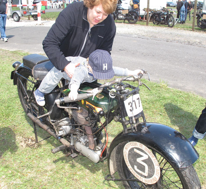 Une BSA latérales avec un détail comme on les aime (mais non, c'est pas le gamin, lui il est de l'année ou presque, mais il promet), non, le détail c'est la plaque de course "Moto Club de Bordeaux • Bordeaux - Pyrénées - Bordeaux"... Difficile de trouver plus authentique.